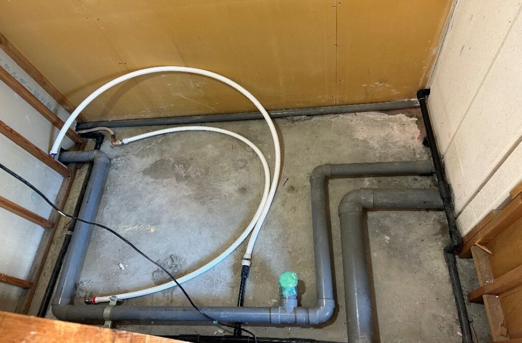 ◎バスタブ下の給水管からの漏水を特定し、バイパス配管及び接続ホース更新で修理完了。