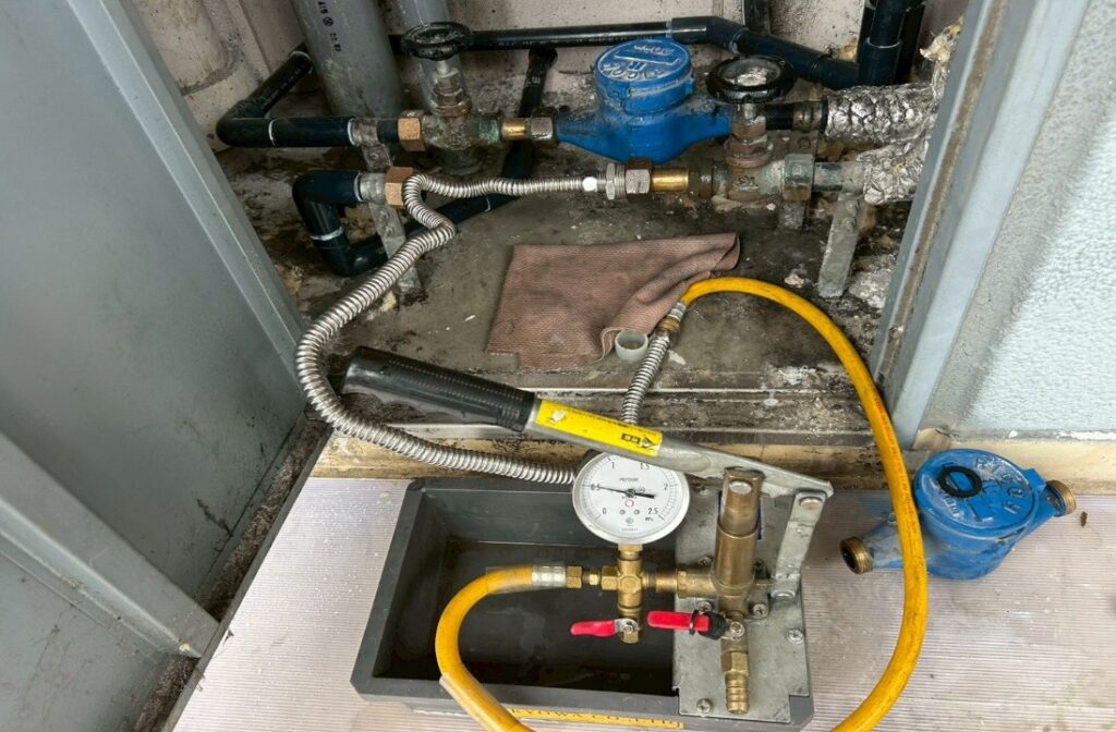 ◎さらに、老朽化したバスタブの交換も当社がワンストップで対応。小型ポンプでテストフローを実施し、漏水がないことを確認しました。