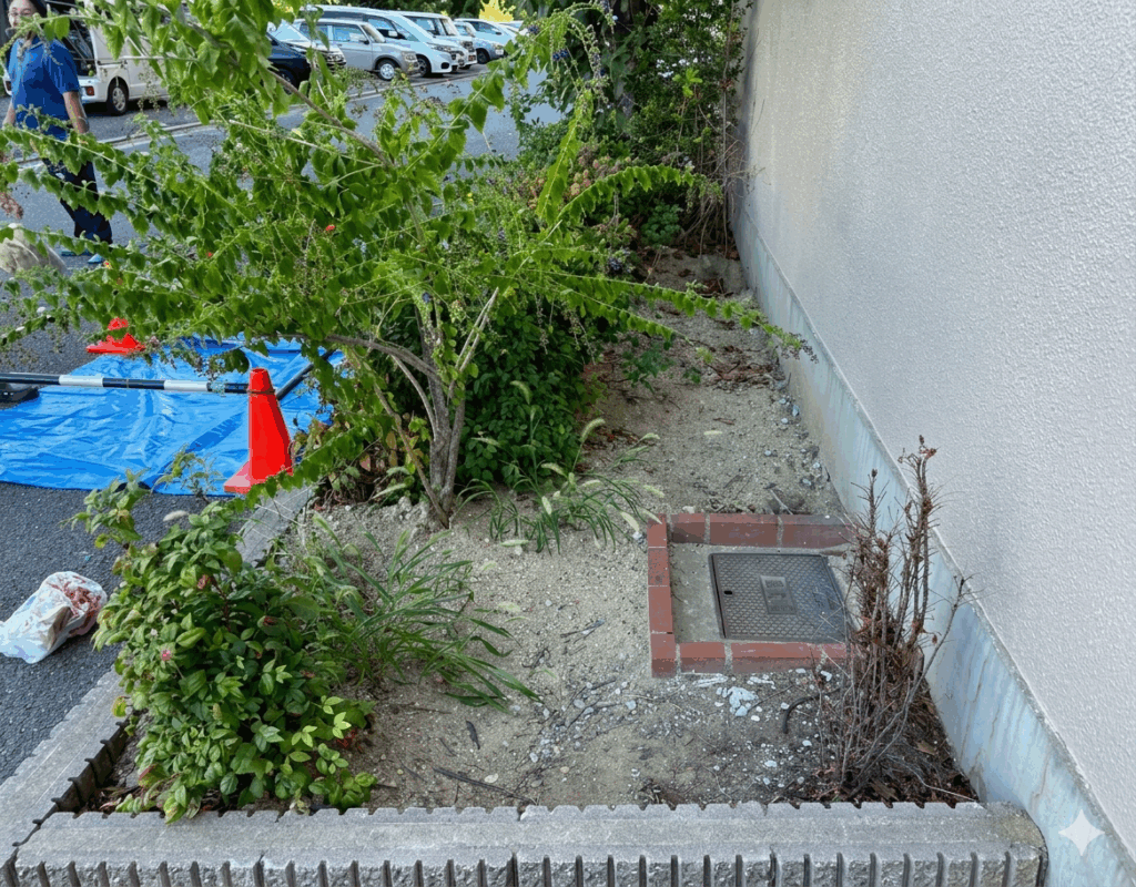 【兵庫県西宮市】マンション屋外給水管漏水修理|植栽根による配管破損を特定・1日完了