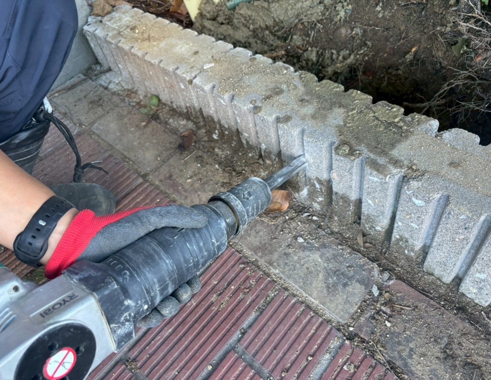 ❶ 既設ポンプの状況確認・ブロック塀撤去