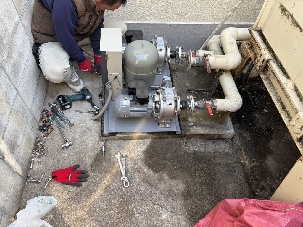 🔧 工事内容 加圧給水ポンプ撤去・新設・カバー取り付け